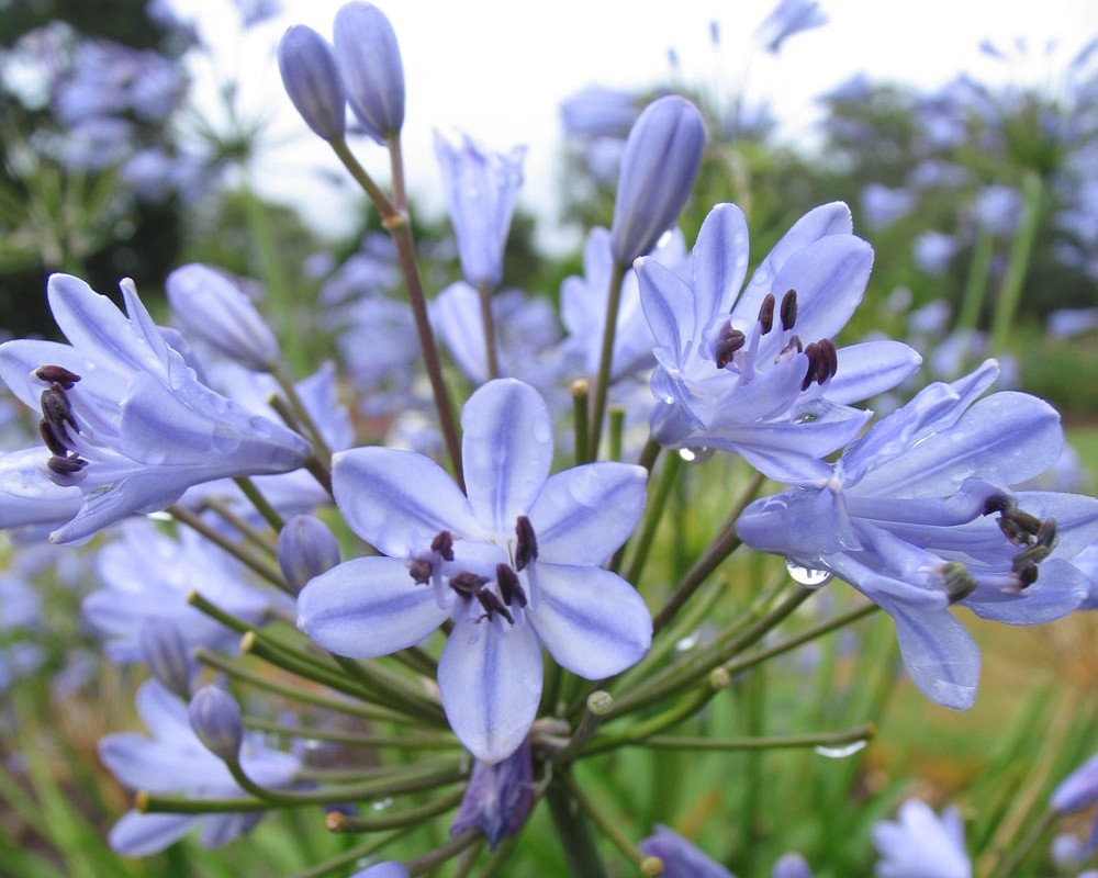 L'agapanthe 'Vallée de la Romanche' est une variété demi-naine persistante aux ombelles bleues.