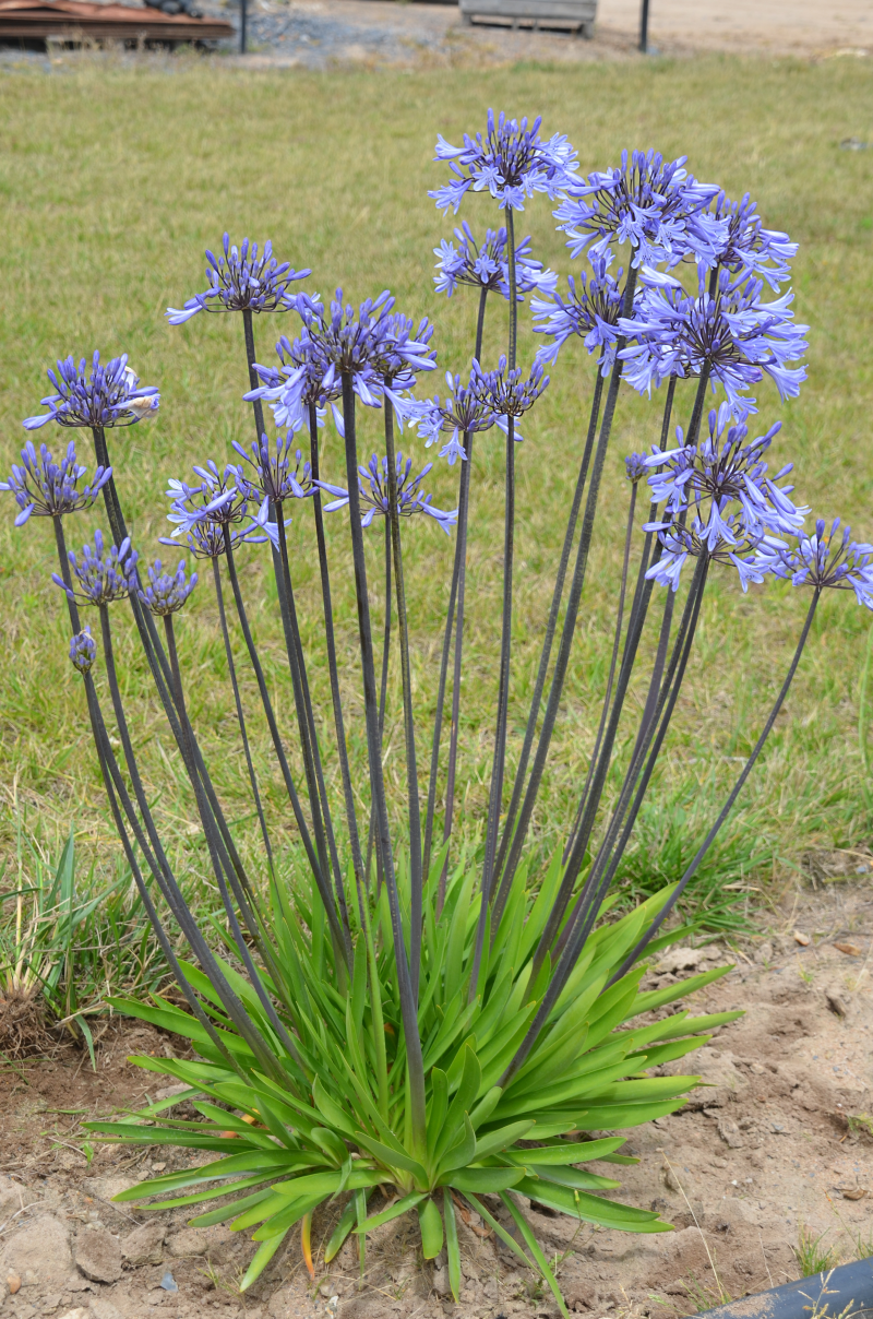 L'agapanthe Graphite Blue est une variété caduc aux ombelles bleues et aux tiges sombres en plein soleil.